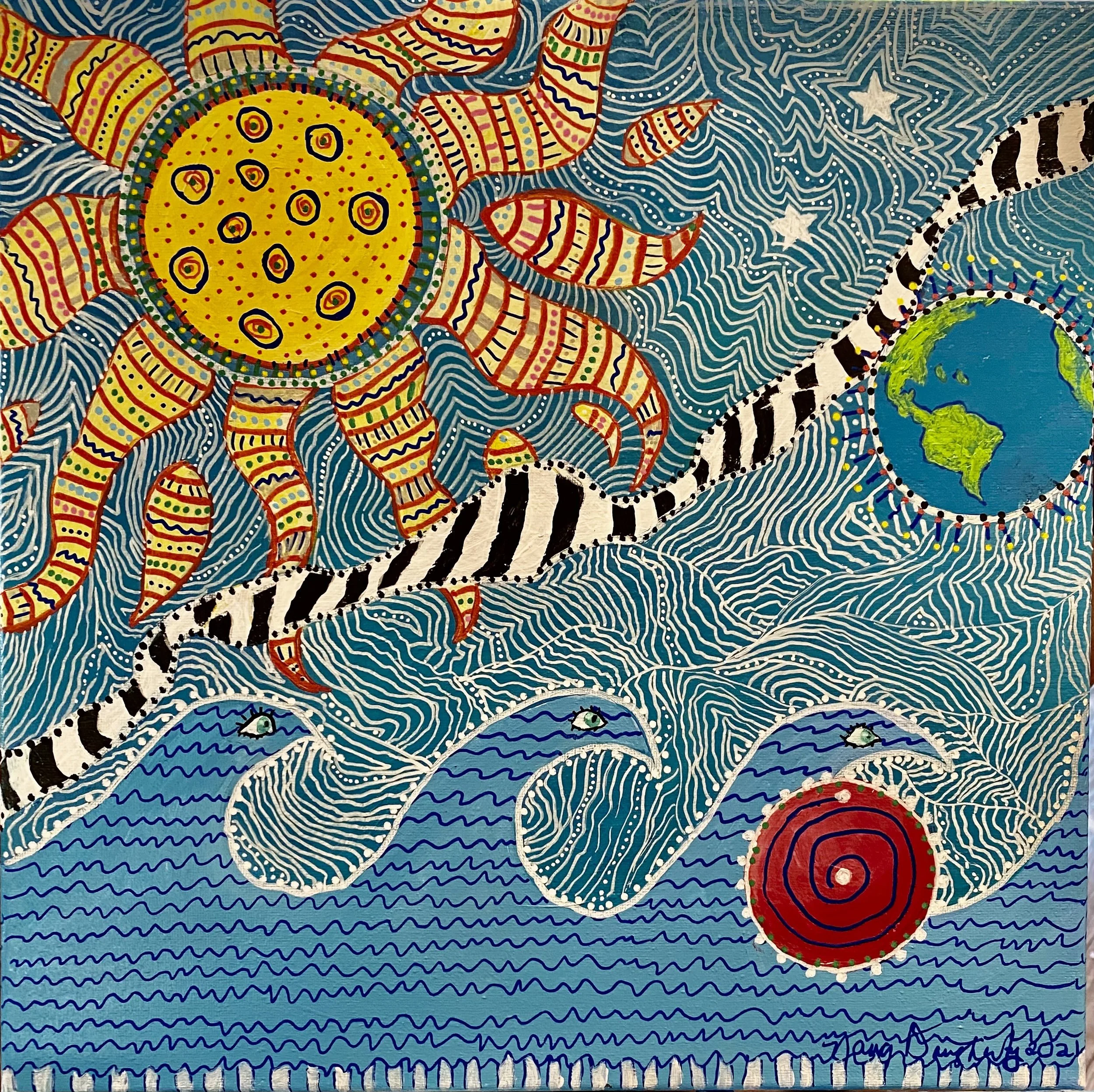 Bright Sunshiny Day 20” x 20” Acrylic Paint & Markers $650 SOLD
